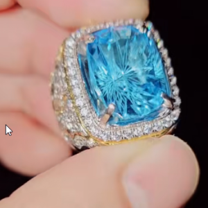 Chiếc nhẫn bạn chia sẻ là một tác phẩm trang sức nổi bật, kết hợp giữa sự sang trọng của kim loại quý và vẻ đẹp rực rỡ của viên đá chủ, mang theo ý nghĩa sâu sắc trong phong thủy.