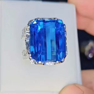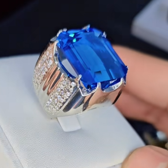 | Mẫu 1 (Ảnh Nền Xanh Tươi) | Xanh Dương Sáng/Tươi (Swiss/Sky Blue): Màu sắc rực rỡ, trong trẻo như bầu trời. Có thể là Topaz Xanh chất lượng cao. Giác cắt Emerald/Octagon lớn, vuông vức, thể hiện sự mạnh mẽ, quyết đoán. | Hiện đại, Tối giản Luxury (Minimalist Luxury): Đai nhẫn kim loại quý (Vàng trắng/Bạch kim) dày dặn, các viên kim cương tấm (hoặc Moissanite) được nạm tinh tế hai bên vai nhẫn, làm nổi bật hoàn toàn viên đá chủ. Phong cách dành cho người yêu thích sự sáng sủa, phóng khoáng và quyền lực hiện đại. |