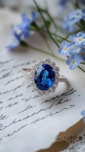 • Vòng Halo Kim Cương: Bao quanh viên chủ là một dải kim cương thiên nhiên rực rỡ, được sắp xếp tỉ mỉ tạo thành những cánh hoa ánh sáng. Sự tương phản tuyệt đối giữa sắc xanh thẳm của Sapphire và lửa sáng của Kim cương tạo nên một hiệu ứng thị giác bùng nổ, khiến viên đá trung tâm trông lớn hơn và tràn đầy sức sống.