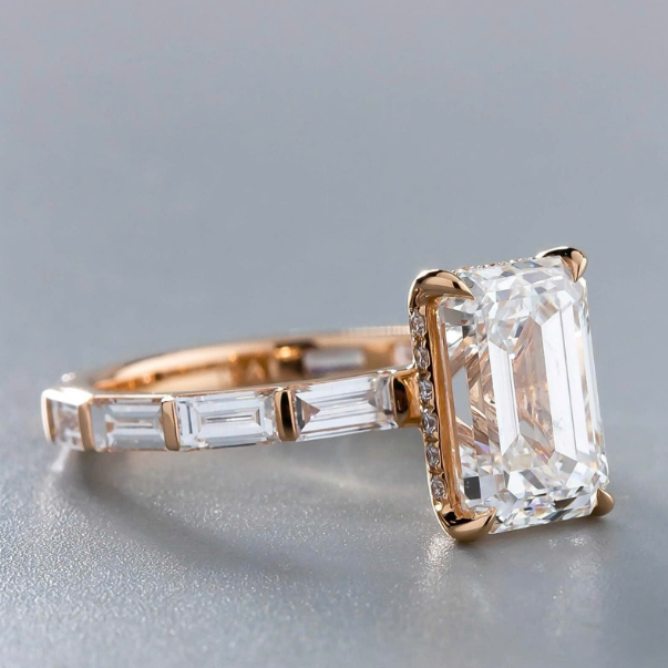 Tuyệt Tác Kim Cương Emerald-Cut & Rose Gold