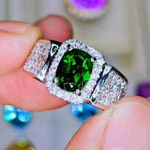 - Đá Tấm: Xung quanh viên đá chủ và dọc theo đai nhẫn được đính kết tinh tế các viên đá tấm lấp lánh (Kim cương, Moissanite, hoặc CZ), tạo thành một “hào quang” rực rỡ, làm tăng sự lộng lẫy và bảo vệ cho viên đá trung tâm.