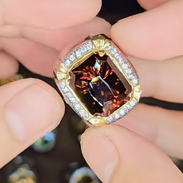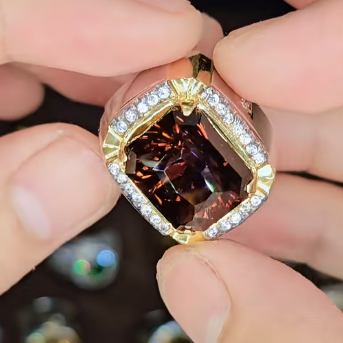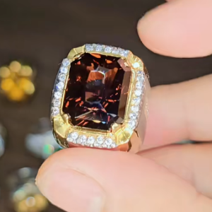 - Kiểu Cắt: Viên đá có kích thước lớn, được cắt giác Oval hoặc Cushion (đệm) lấp lánh (Facet Cut), làm nổi bật độ trong suốt và sắc vàng rực rỡ.