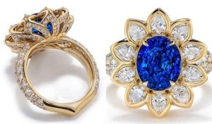 • Chất liệu: Vàng vàng 18k, sự tương phản giữa ánh vàng ấm và sắc xanh lạnh của Sapphire tạo nên một tổng thể vô cùng nổi bật.