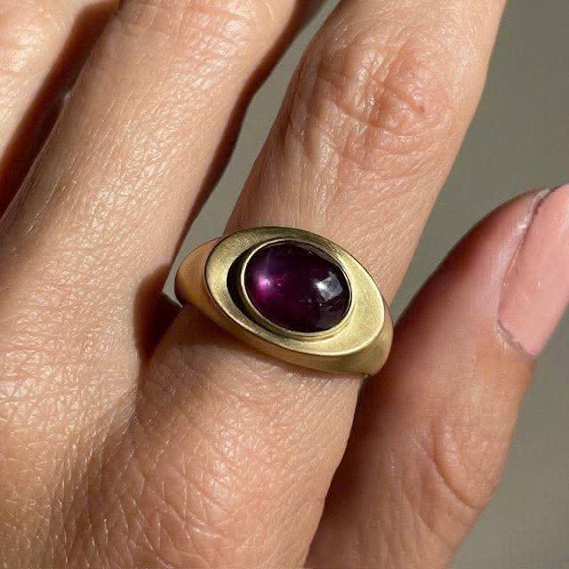 - Viên đá Cabochon Oval được cố định bằng kỹ thuật viền bi (bead setting) hoặc viền vàng trơn, tạo điểm nhấn thủ công tinh tế.