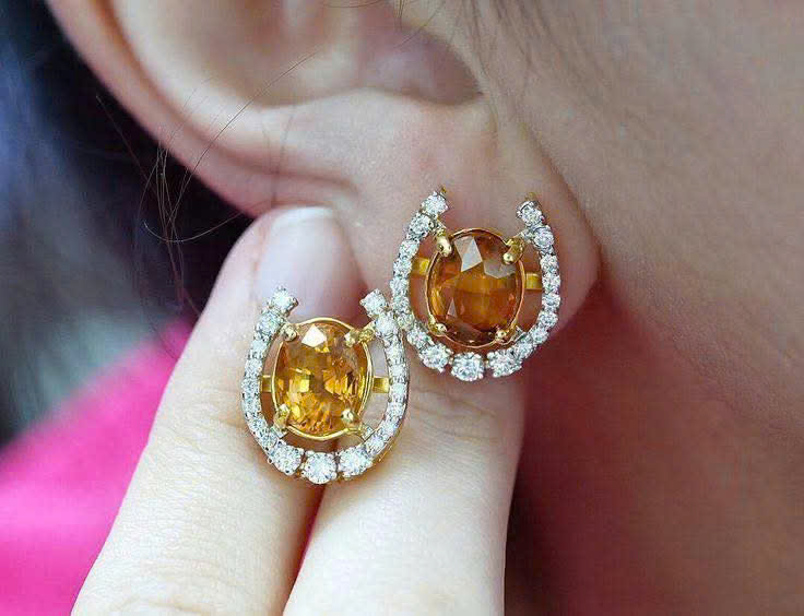 Đôi bông tai này là sự kết hợp hoàn hảo giữa sắc vàng rực rỡ của đá quý Citrine (Thạch Anh Vàng) và thiết kế hiện đại, lấp lánh, mang đậm phong cách Luxury Statement (Trang sức tuyên ngôn). Đây không chỉ là món trang sức nổi bật mà còn là vật phẩm phong thủy mạnh mẽ, thu hút sự giàu có và niềm vui.