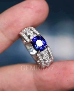 - Mô tả: Viên đá hình bầu dục (oval cut) hoặc vuông bo góc (cushion cut), nổi bật với màu xanh dương sâu thẳm (Royal Blue), độ trong cao và lửa rực rỡ. Sapphire là viên đá quý tượng trưng cho trí tuệ, sự cao quý, quyền lực và mang lại sự bình an, minh mẫn cho người sở hữu.